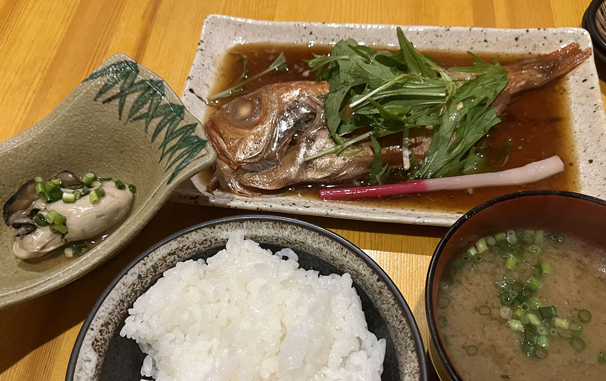 晩御飯は、たくさんのお魚や牡蠣をいただきました。